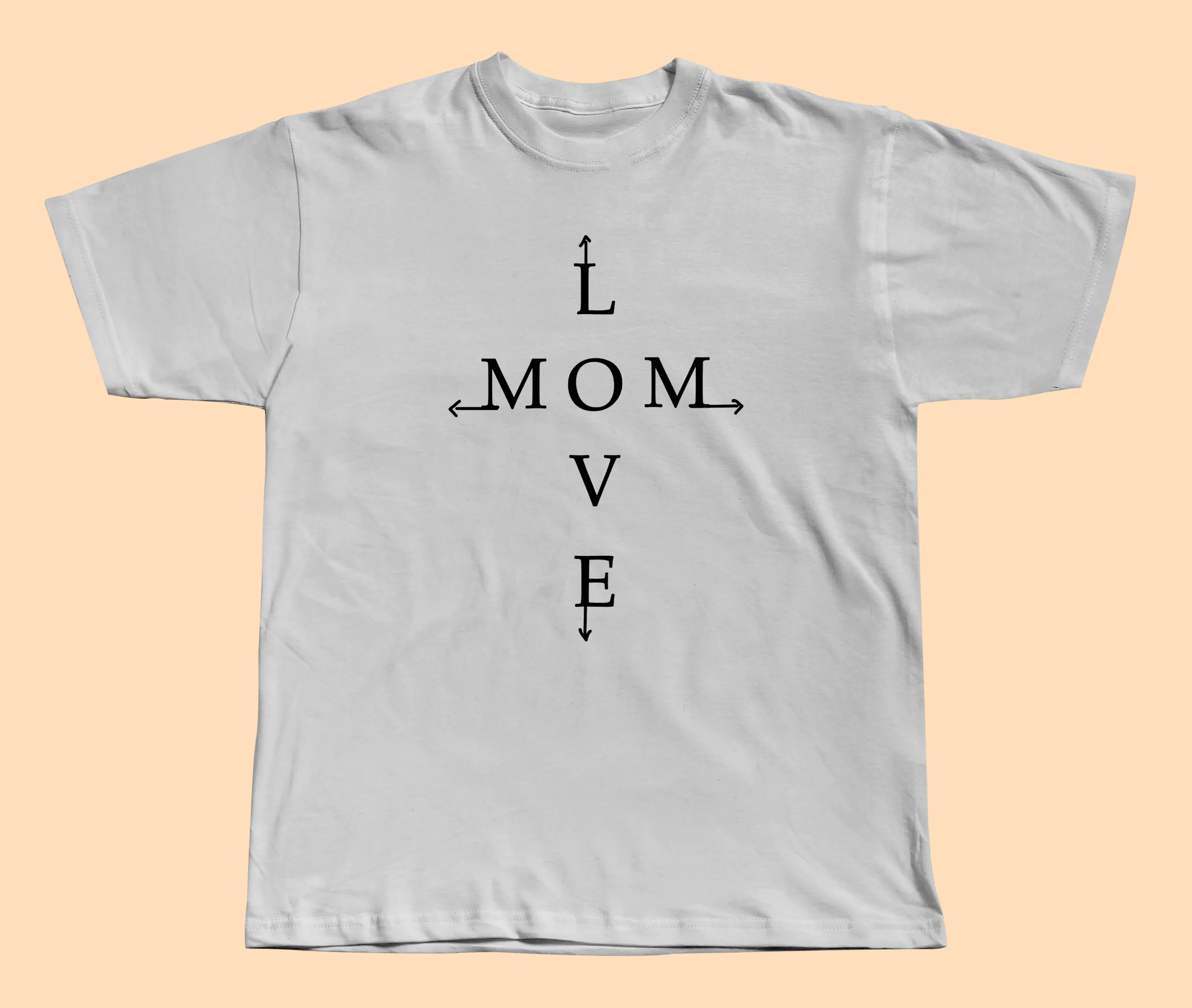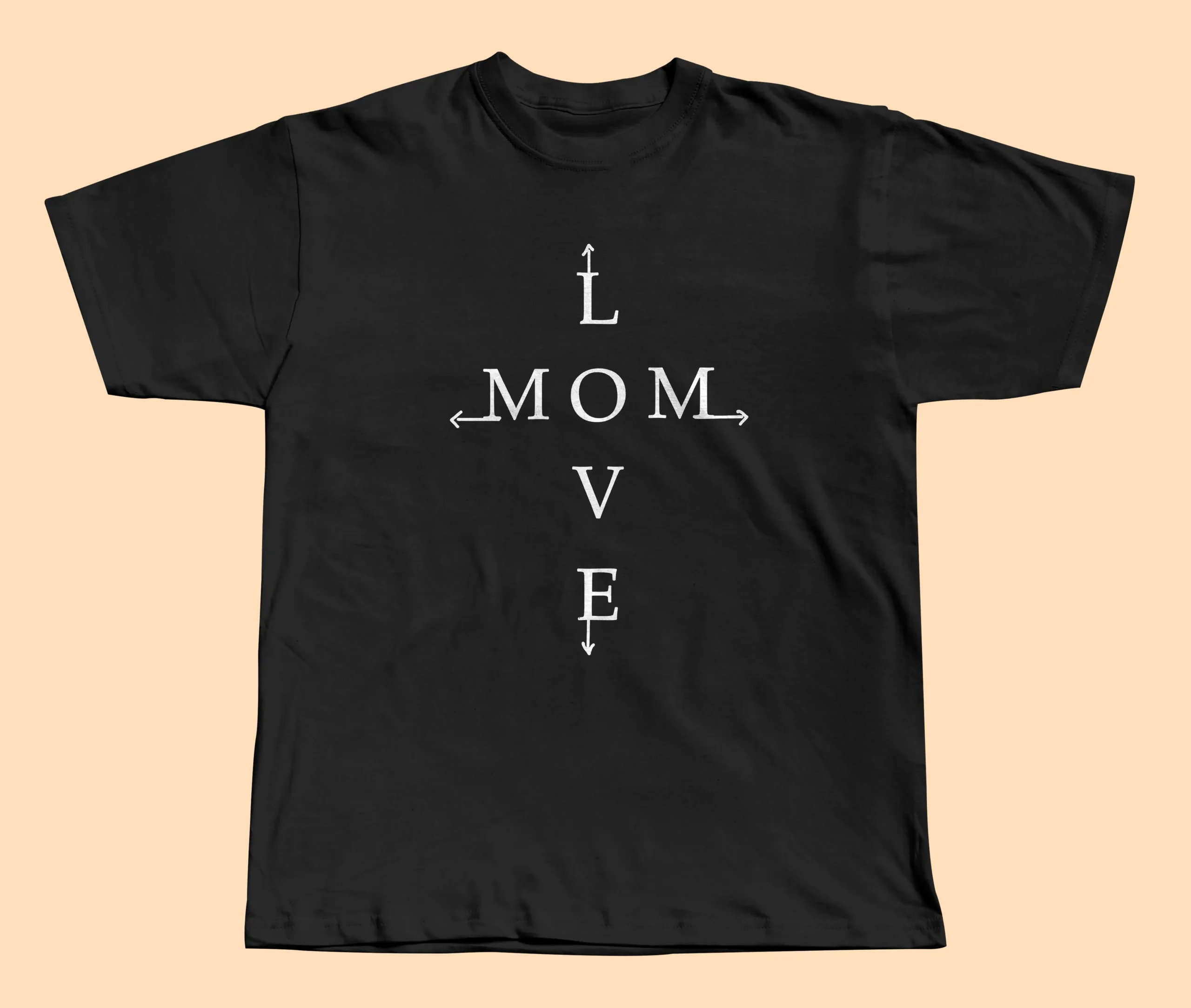 Krzyżowe ułożenie liter LOVE i MOM daje piękny, symboliczny efekt.