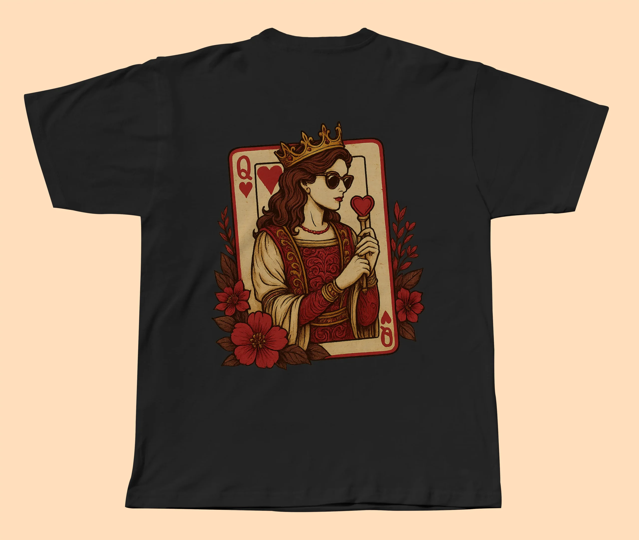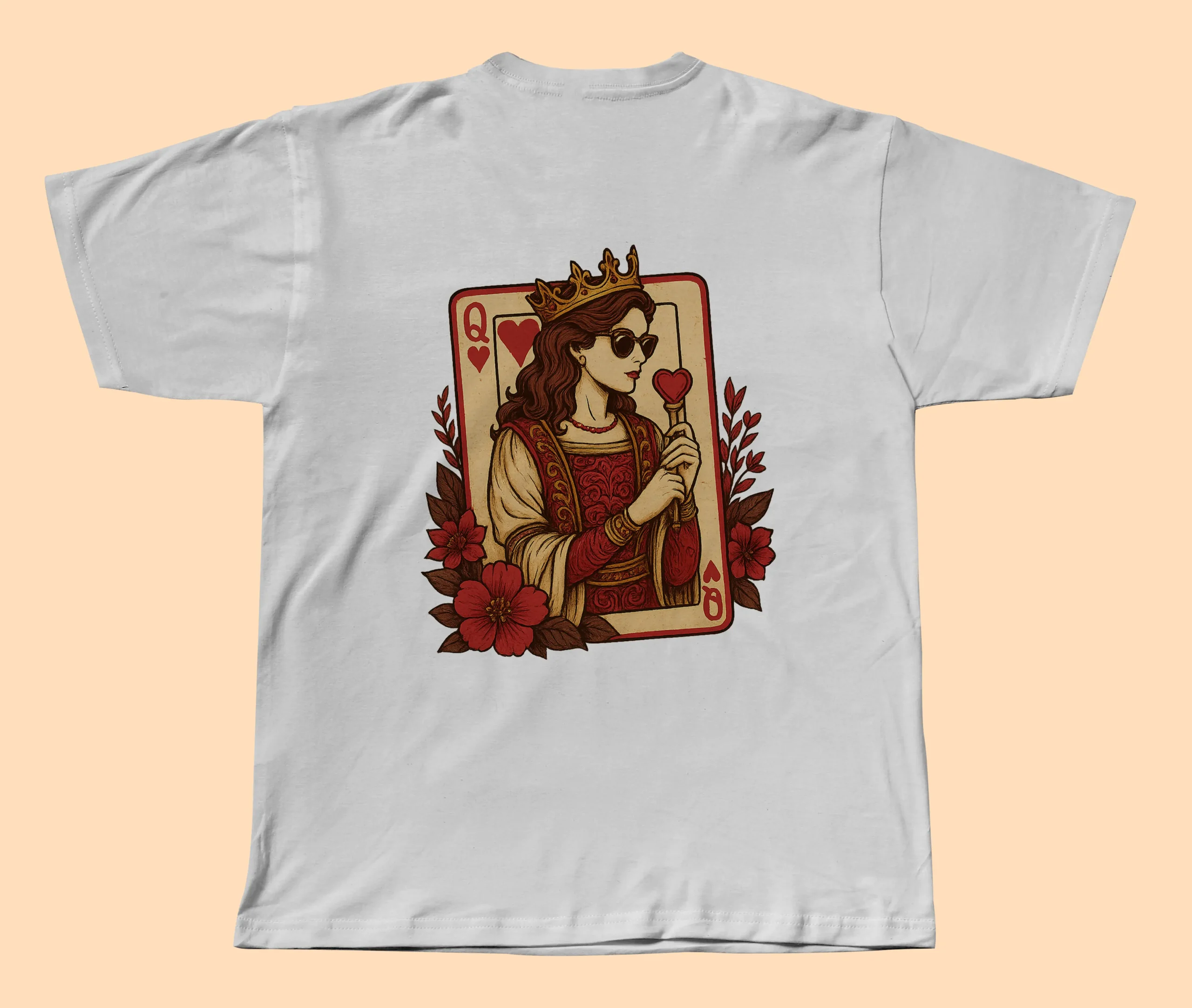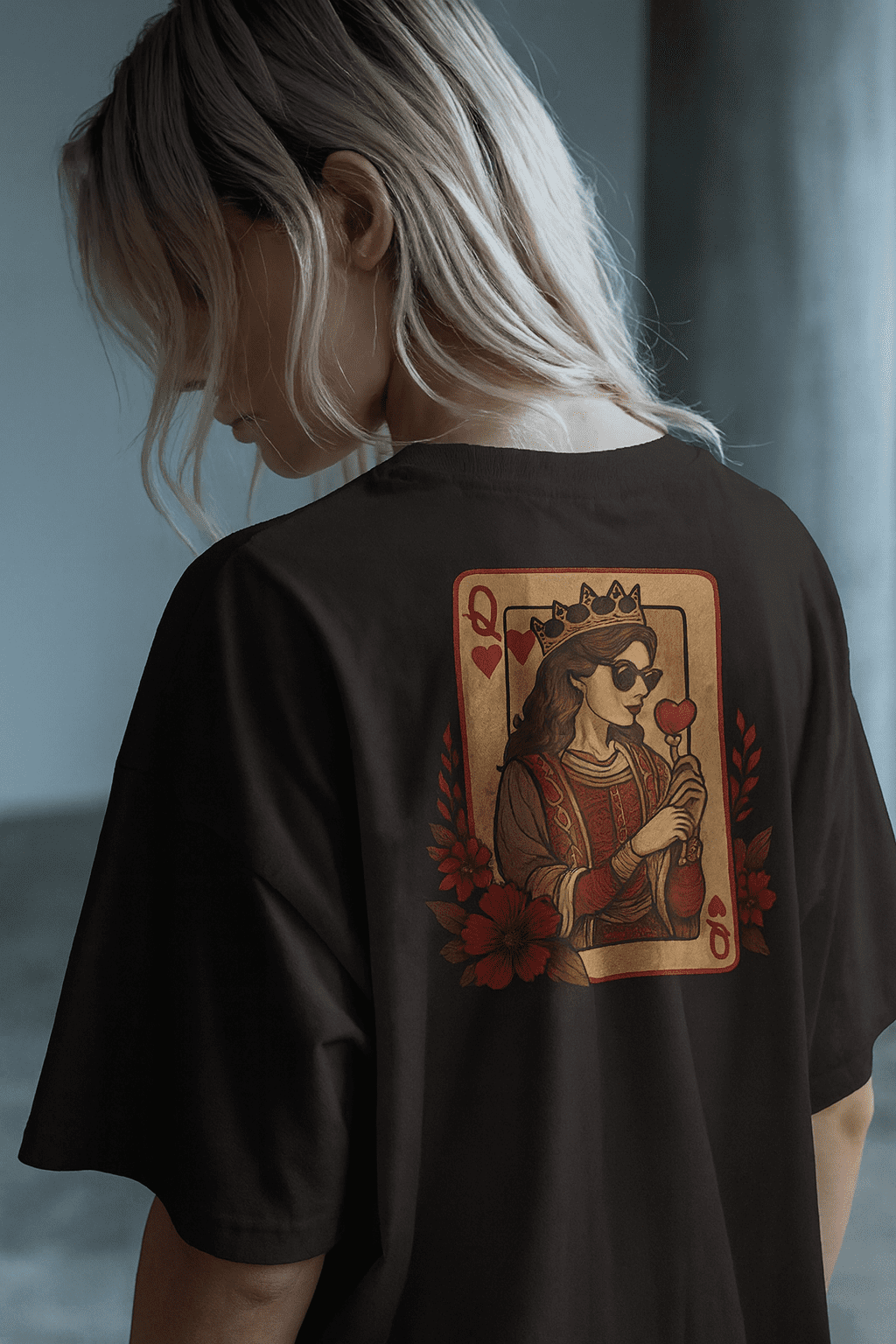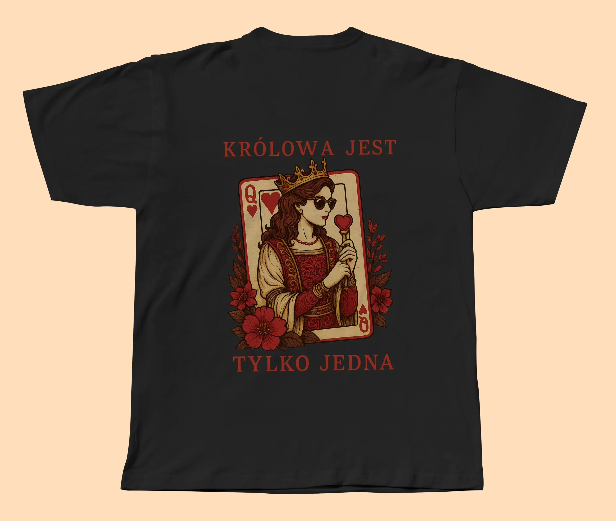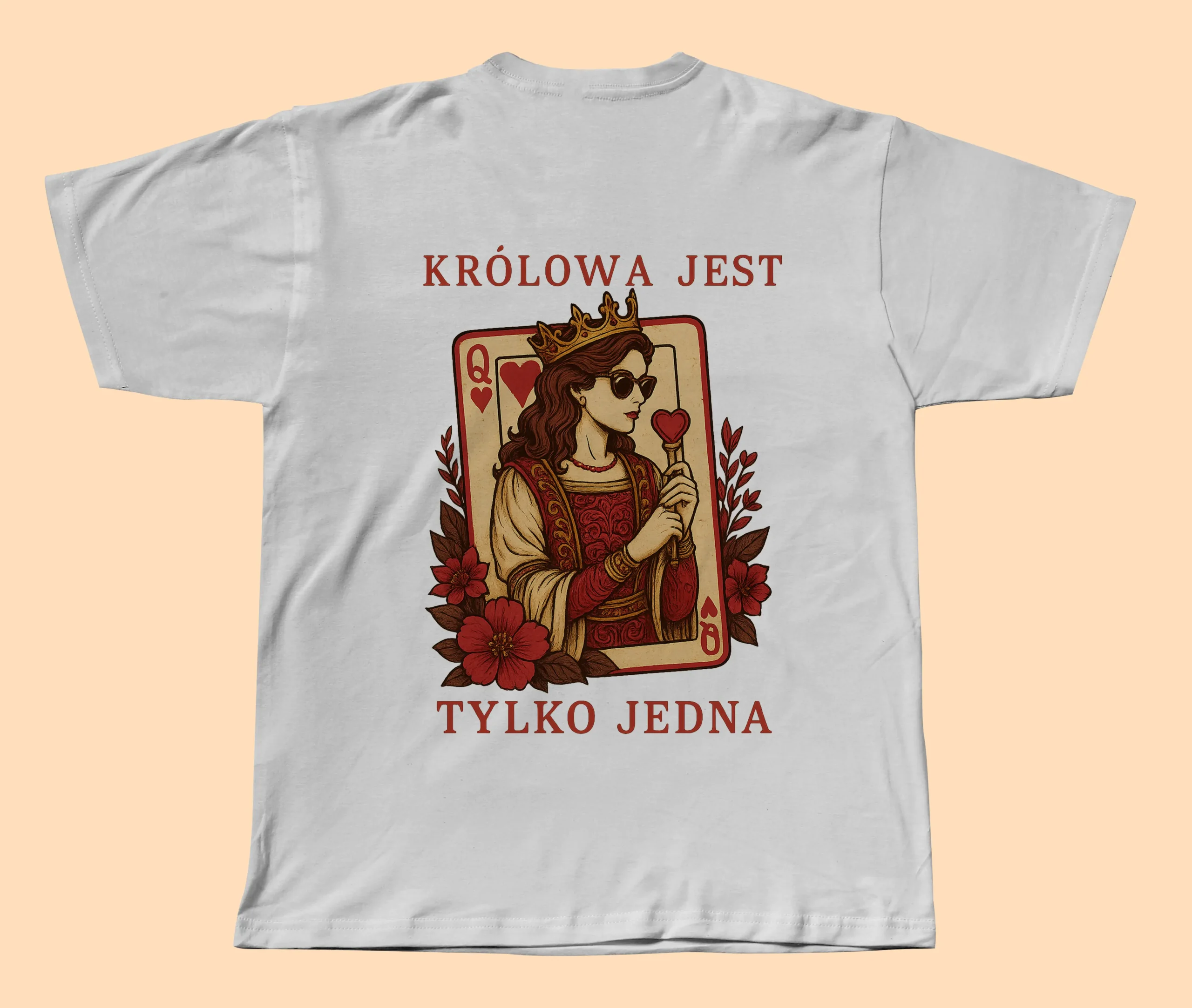 Koszulka „Królowa jest tylko jedna” to połączenie elegancji, siły i kobiecego charakteru. Inspirowana kartą królowej kier, symbolizuje wyjątkowość, klasę i pewność siebie. To idealny wybór dla kobiety, która nie potrzebuje tytułów — wystarczy, że jest sobą.